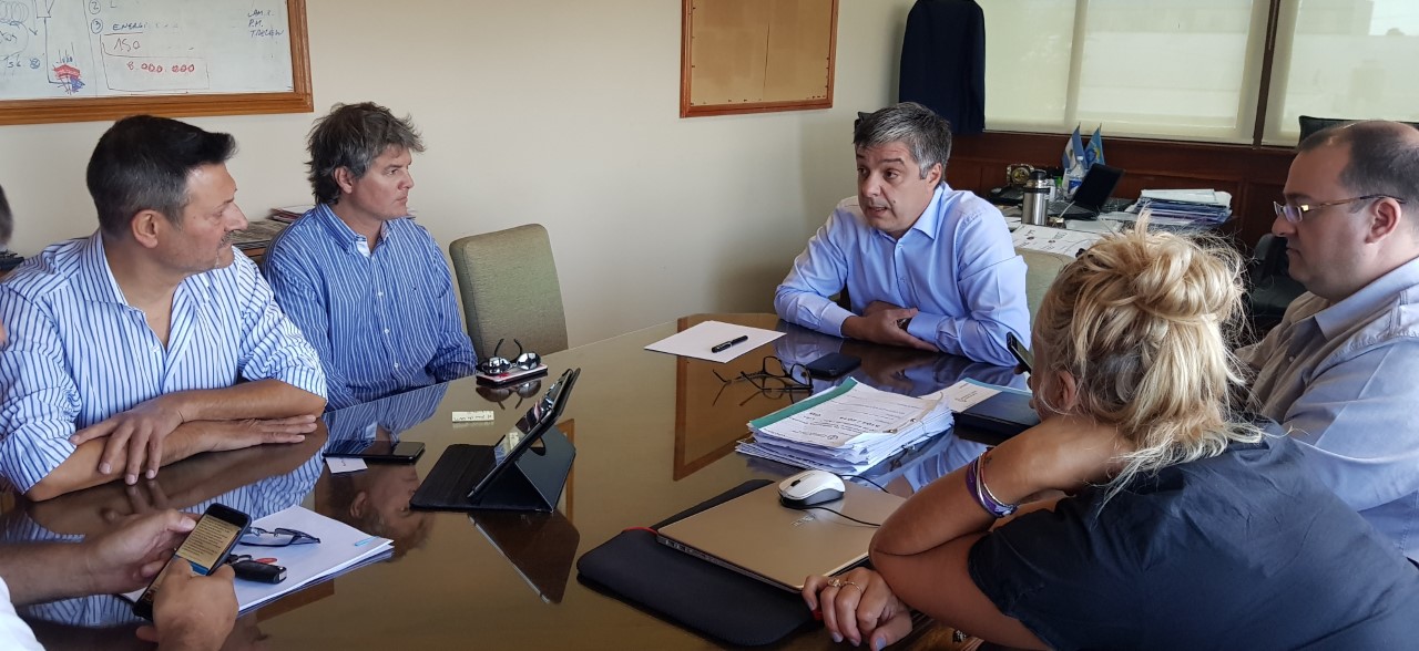 El responsable de la cartera de Infraestructura, Energía y Planificación del Chubut, Gustavo Aguilera, y el subsecretario de Obras Municipales, Gustavo Hermida, recibieron este miércoles al intendente de Puerto Pirámides, Fabián Gandón, y a su equipo técnico, con el propósito de dialogar sobre un proyecto que mejorará la prestación del servicio de agua en la localidad.