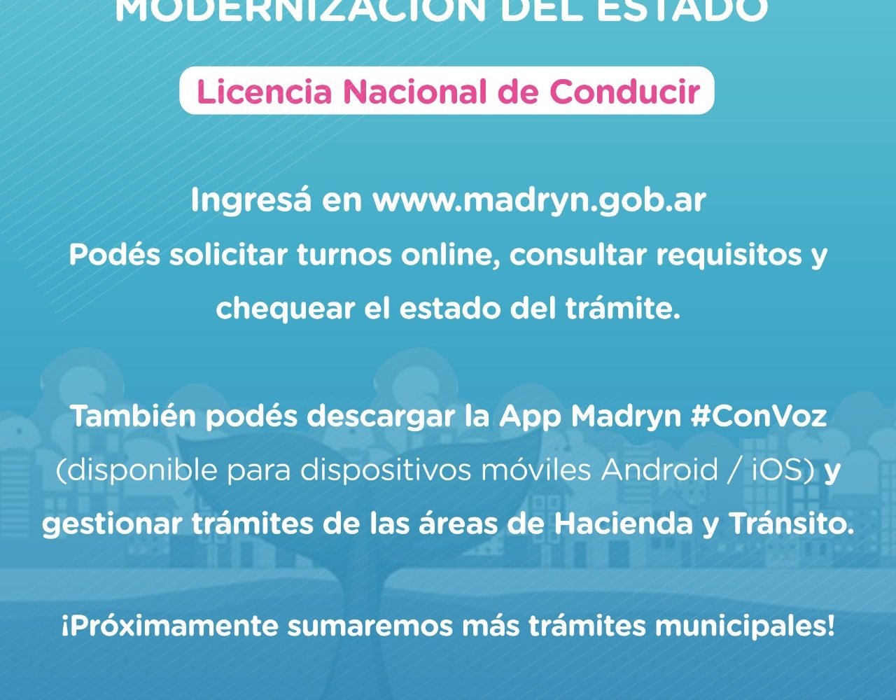 Además de la posibilidad de solicitar turnos y gestionar trámites online en la web municipal que ya estaba vigente para distintas áreas, se renovó el espacio para la Licencia Nacional de Conducir. También está disponible la aplicación Madryn #ConVoz para dispositivos móviles que permite realizar gestiones correspondientes a Hacienda y Tránsito