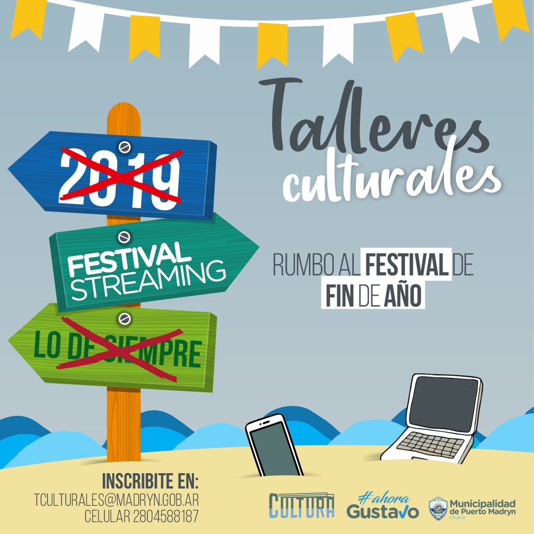 Música, Danza, Literatura, Teatro, Audiovisual y Muralismo son los talleres que trabajarán en la muestra anual. Las inscripciones se pueden realizar a través del mail tculturales@madryn.gob.ar y al celular 2804588187, en ambos casos a partir del lunes 14 de septiembre.