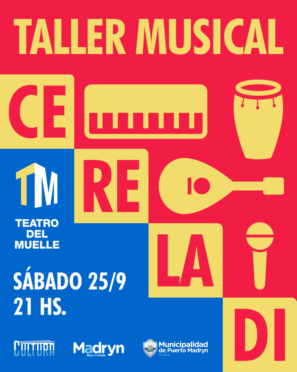 La Subsecretaría de Cultura de la Municipalidad de Puerto Madryn invita al concierto de los alumnos y alumnas del Taller de Creación Musical de CE.RE.LA.DI, coordinado por el profesor Gustavo Gelpi. La presentación se llevará a cabo el sábado 25 a las 21 horas en el Teatro del Muelle, ubicado en avenida Rawson 60.