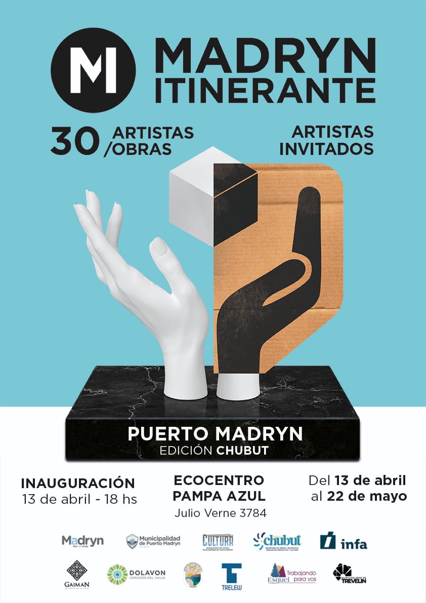 Estará expuesta desde el 13 de abril hasta el 22 de mayo. En esta oportunidad se sumarán artistas invitados de las localidades que se visitaronLa Subsecretaría de Cultura de la Municipalidad de Puerto Madryn invita al cierre del recorrido de “Madryn Itinerante”. La muestra estará expuesta a partir del miércoles 13 de abril a las 18 horas en el Ecocentro Pampa Azul, ubicado en Julio Verne 3784.Durante Semana Santa, se podrá visitar el jueves 14 y viernes 15 de abril de 18 a 20 horas, para luego continuar los viernes y sábados de 18 a 20 horas hasta el 22 de mayo inclusive.Cabe mencionar que la muestra comenzó su recorrido en Esquel y continuó por Trevelin, Dolavon, Gaiman, Rawson, Trelew y Rada Tilly. Este intercambio entre comunas, tuvo el objetivo de apoyar, fomentar y promover la experiencia artística y cultural.MADRYN ITINERANTESe trata de 30 obras de 30 artistas. La muestra propone una exposición colectiva donde los artistas madrynenses presentan sus obras de manera conjunta. Sus creaciones podrán ser apreciadas con una mirada integral de la producción plástica y visual de la ciudad, desde los diversos lenguajes de las artes visuales como dibujo, pintura, fotografía, grabado, arte textil, arte digital, y escultura.En esta oportunidad, se sumarán artistas invitados de las localidades visitadas.