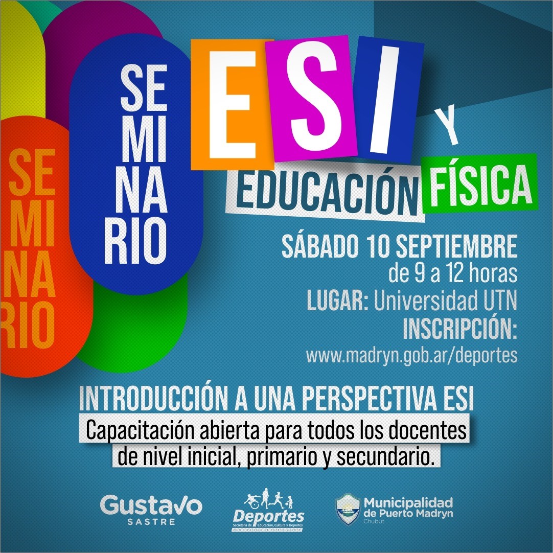 Este seminario es organizado por la Subsecretaría de Deportes de la Municipalidad de Puerto Madryn y está orientado a docentes de establecimientos de educación de Nivel Inicial, Primaria y Secundaria, de gestión estatal o privada. Será el sábado 10 de septiembre de 9 a 12 horas en la UTN. Las inscripciones se reciben en www.madryn.gob.ar/deportes