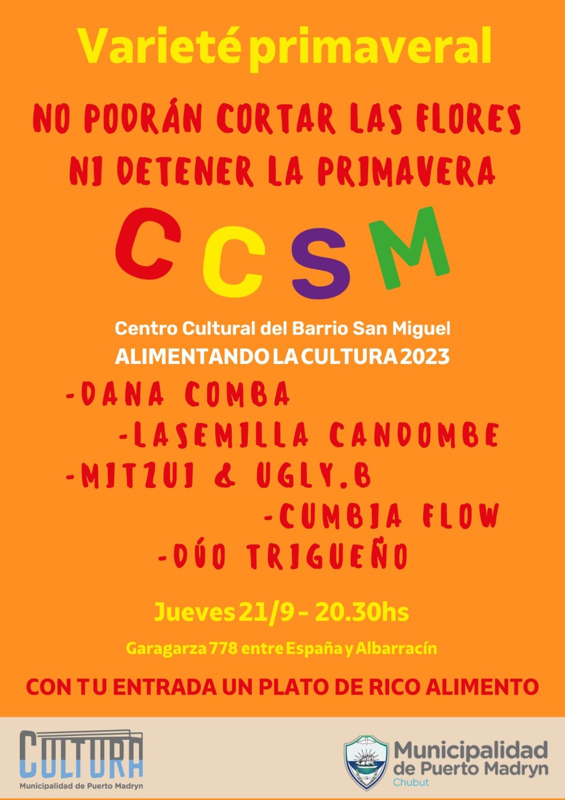 La Subsecretaría de Cultura de la Municipalidad de Puerto Madryn invita a una nueva edición del ciclo “Alimentando la Cultura” que tendrá lugar el jueves 21 de septiembre a las 20.30 horas en el Centro Cultural San Miguel, ubicado en Garagarza 778.