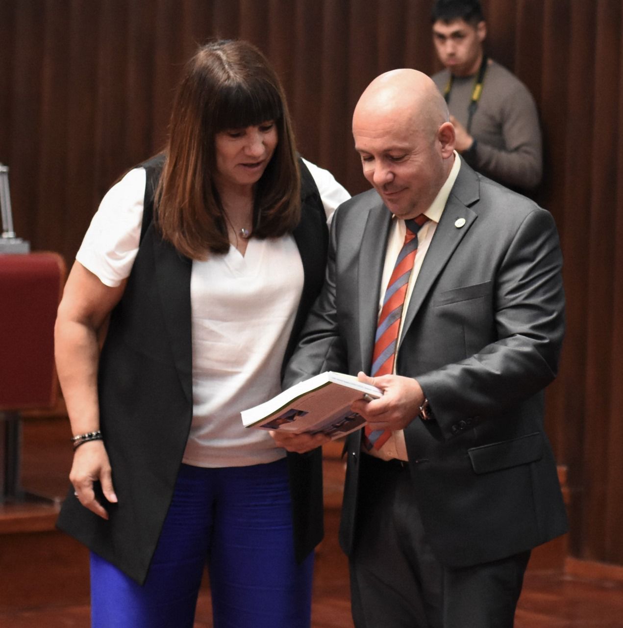 En un breve acto formal, la presidente de la Comisión Permanente de Legislación General, Cultura y Educación, María Cativa, le hizo entrega al presidente de la casa, vicegobernador Ricardo Sastre, de un ejemplar de cada una de las cuatro obras ganadoras.