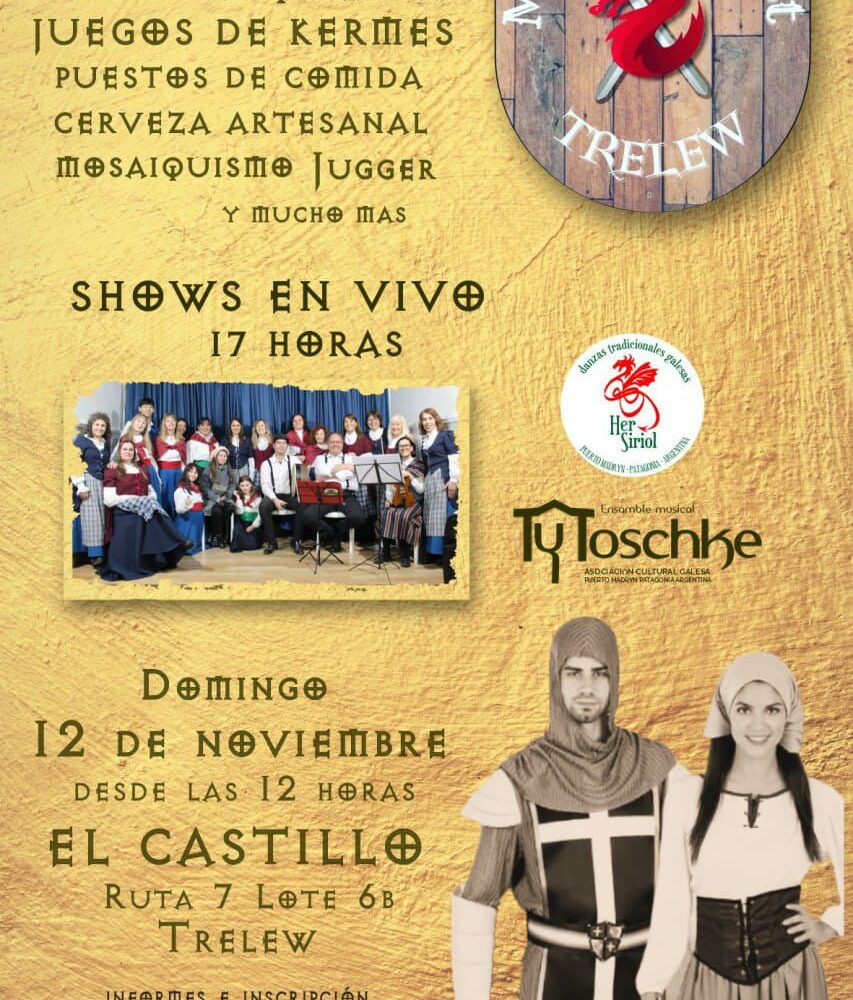 El próximo domingo 12 de noviembre en instalaciones de El Castillo (Ruta 7 Lote 6b de Trelew) se realizará la Medieval Fest Trelew con diversas actividades y propuestas gastronómicas, además de presentaciones artísticas. La iniciativa es organizada por Cristian Cobacho y Pamela Sosa y se extenderá desde las 12 y hasta las 20 horas.
