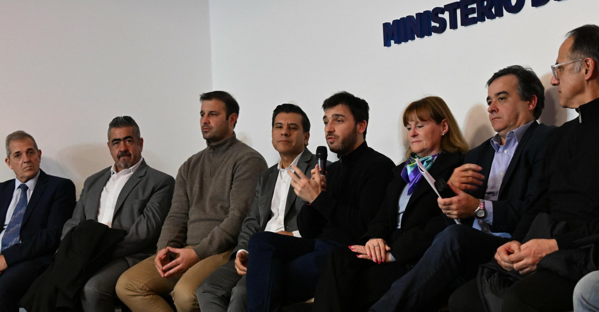 Junto al gobernador Torres expusieron el ministro de Gobierno, Andrés Meiszner; el ministro de Economía, Facundo Ball; la ministra de Producción, Digna Hernando; el ministro de Seguridad y Justicia, Héctor Iturrioz; el ministro de Turismo y Áreas Protegidas, Diego Lapenna; el ministro de Educación, José Luis Punta; el secretario de Salud, Sergio Wisky; y el secretario coordinador de Gabinete, Guillermo Almirón.