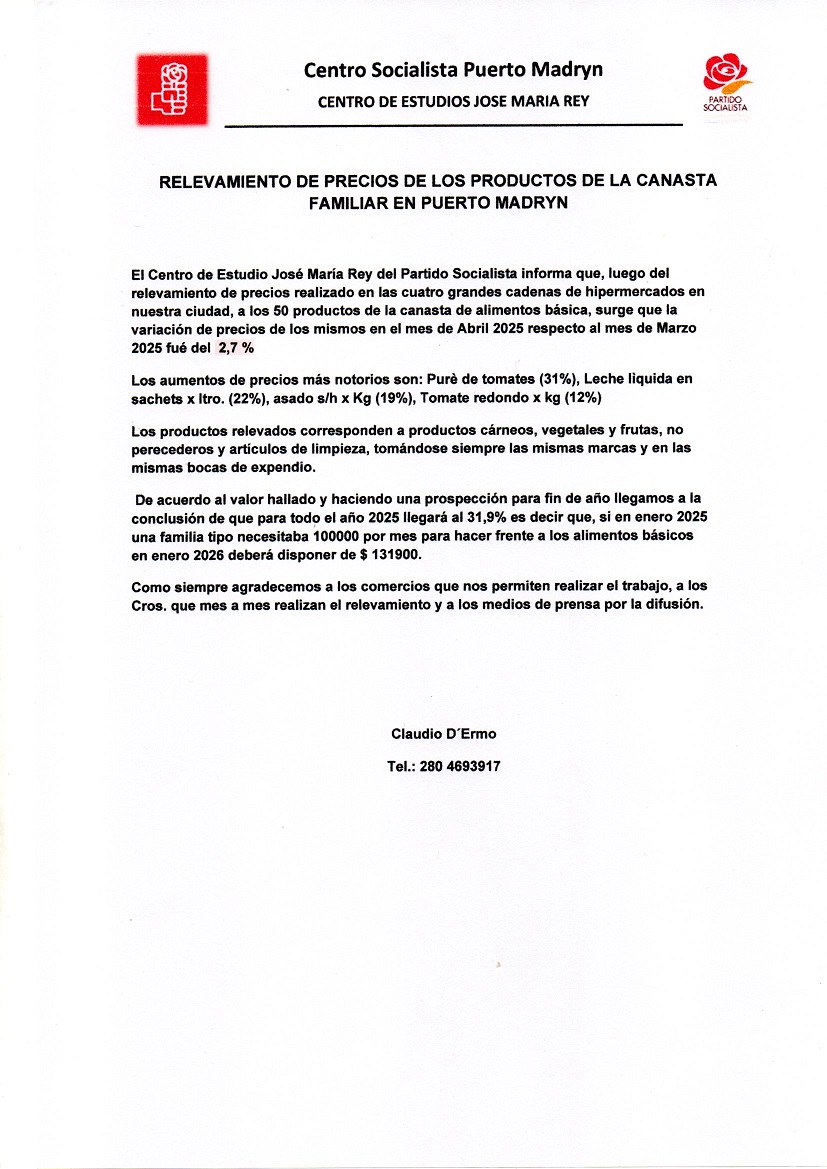RELEVAMIENTO DE PRECIOS DE LOS PRODUCTOS DE LA CANASTA FAMILIAR EN PUERTO MADRYN