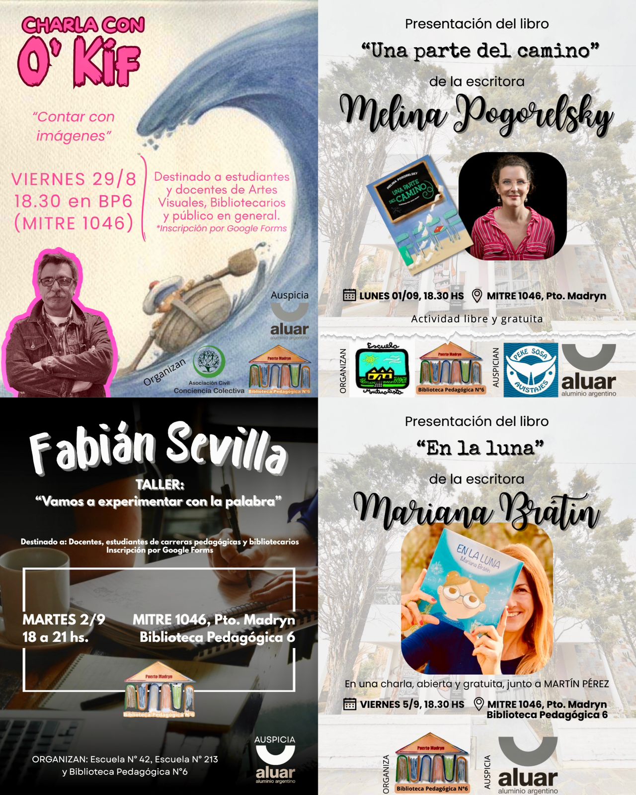 Durante la próxima semana, la Biblioteca Pedagógica N° 6 de Puerto Madryn (Mitre 1046) será escenario de diversas actividades culturales abiertas a la comunidad, con la presencia de destacados escritores y especialistas.