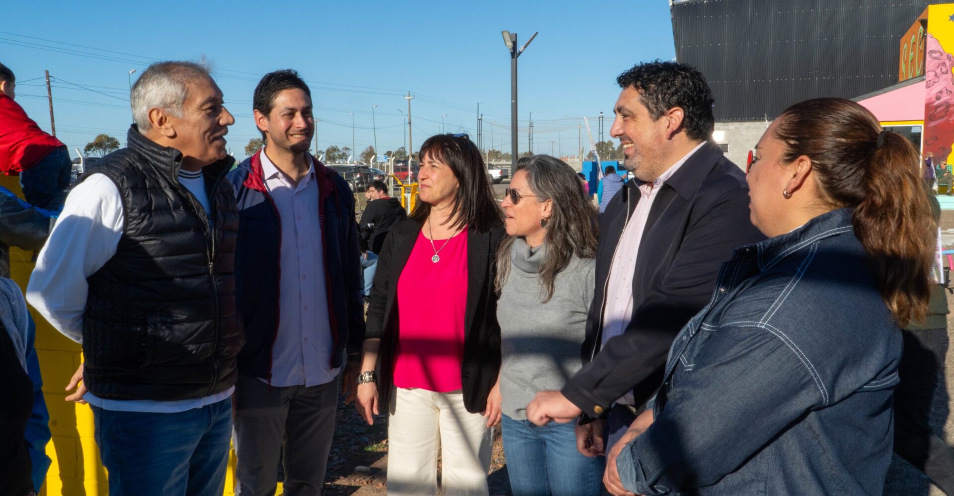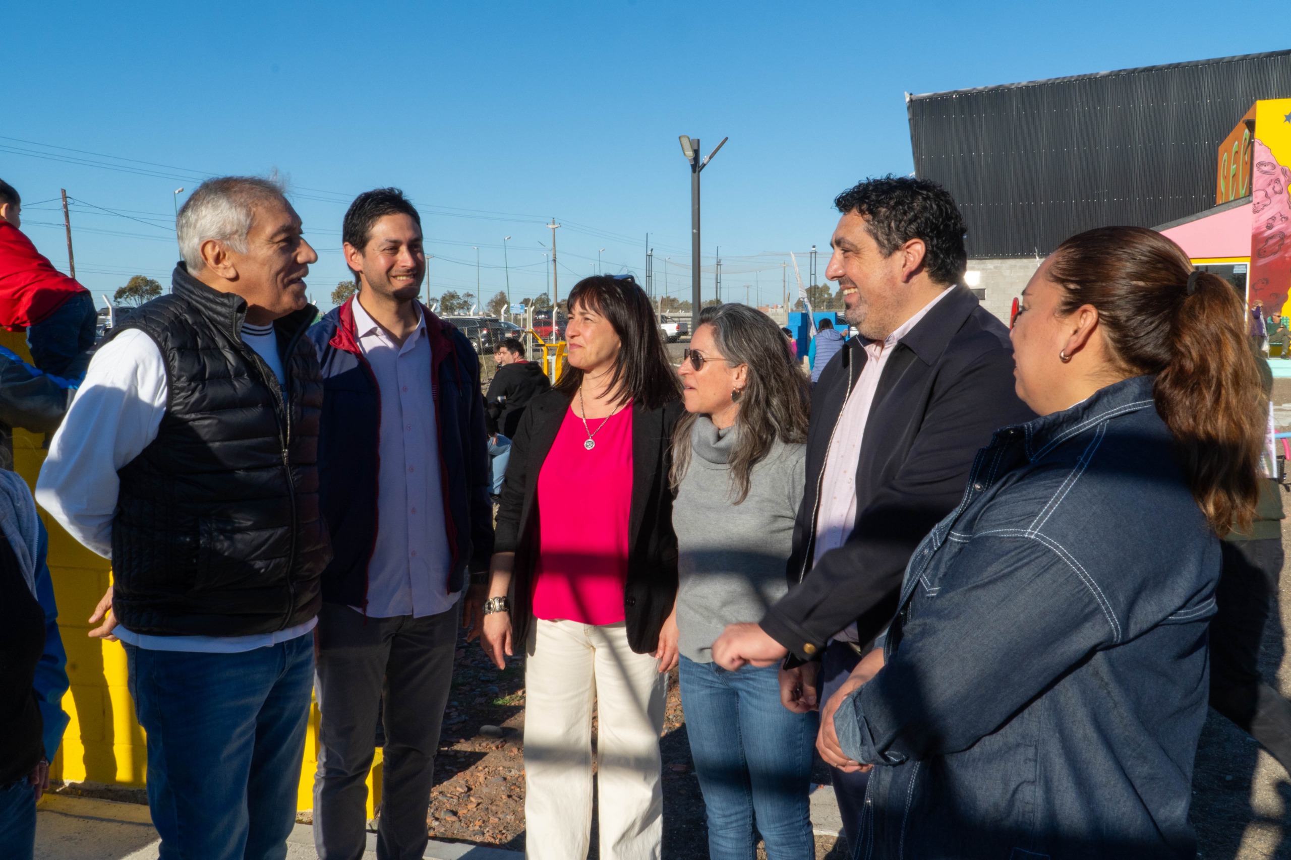 Funcionarios municipales acompañaron la inauguración de la plaza y del Punto de Encuentro Comunitario en el Parque Rawson del SEC, una obra que suma un gimnasio de calistenia al aire libre, juegos inclusivos, sector para mascotas, modernas atracciones de altura, forestación, sistema de riego y luminaria de última generación.