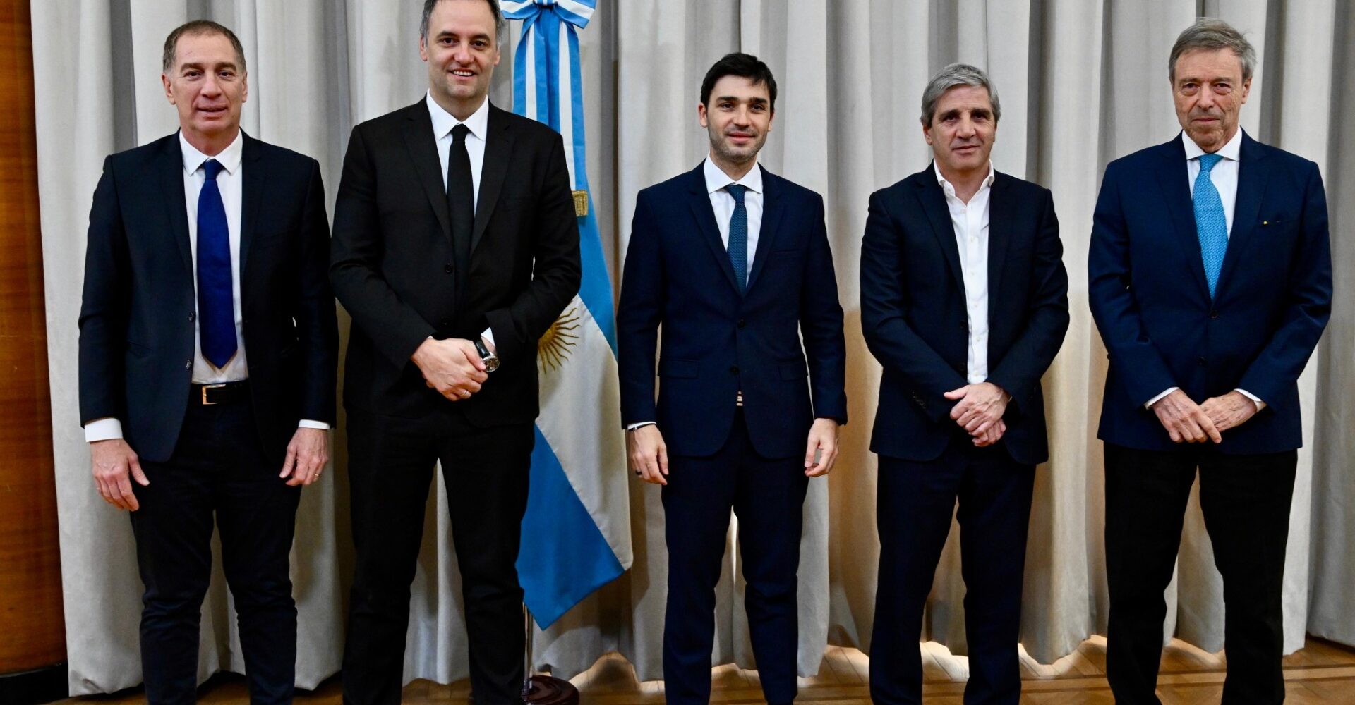 Durante la firma estuvieron presentes funcionarios nacionales como Caputo, Santilli, Adorni y Daniel Gonzáles, además de representantes sindicales Emiliano Mongilardi y Luis Villegas.